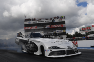 DeJoria qualified in the top half of the field for Sunday’s elimination show at Brainerd International Raceway and drew Blake Alexander as her first-round competitor. She took the Bandero Premium Tequila GR Supra to the stripe in 3.967 seconds to get the win light over a tire-smoking Alexander, and by earning the round win, DeJoria moved ahead of Cruz Pedregon in the standings up to seventh.
