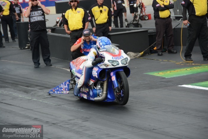 The Lucas Oil Buell was solid throughout the initial three qualifying sessions, but it wasn’t until the final session that Arana really lit up the scoreboard. Setting low e.t. and top speed of the weekend, Arana ran a 6.796-second pass at 197.22 mph to lock the top spot.
