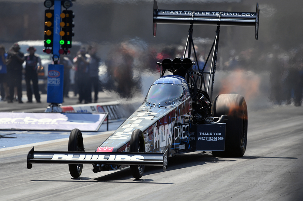 In the first round Ashley was the No. 4 qualifier and drew newcomer Jacob McNeal in the Scott Palmer owned Top Fuel dragster.  This was the first head-to-head meeting for the young drivers. Ashley was nearly perfect off the starting line cutting a .018 reaction time to launch the Phillips Connect Toyota Top Fuel dragster. McNeal was clean off the line, but Ashley immediately smoked the tires. Ashley tried to give his 12,000-horsepower racecar a quick pedal to get it to reconnect with the racetrack, but McNeal was able to hold on for his first career round win.