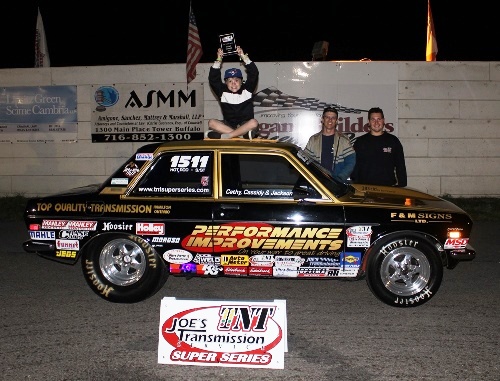 In addition to racing in the series, Barnes is also Director of Operations for the Joe’s Transmission TNT Super Series. “This is the seventh year for the series and I just can’t thank everyone enough including all the people who race in and support this series, especially Joe Boniferro. I also want to thank tonight’s sponsors Mel and Tara of The Sister Act Band and all the people who come together all year long to make this the most popular and most competitive sportsman series in the country.”