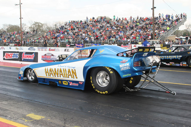 “This is big for us,” Boychuk explained. “We struggled for the last year-and-a-half or so and it’s been really painful. We started off winning a lot, then it kind of all went away on us. Now it’s back – the car’s back. I can feel the car is back and it’s really working the way we want it to work. We changed a few things. I bought out my partner, Ron Hodgson. We had a great relationship – we still do – he didn’t want to race as much as I did. Now we got Twig (legendary driver Twig Zeigler of 1970s Pizza Haven Funny Car fame) and Roland (revered ’60s-’70s “Hawaiian” Funny Car owner Roland Leong) both working on the car and they’ve got it back again. I’ve got two great guys looking after the car. The team – we’ve got the same crew working on the car – has so much consistency.”