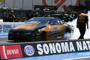 SONOMA, CA – Racing at Sonoma Raceway for the first time Pro Stock rookie Camrie Caruso and the Tequila Comisario Chevrolet Camaro