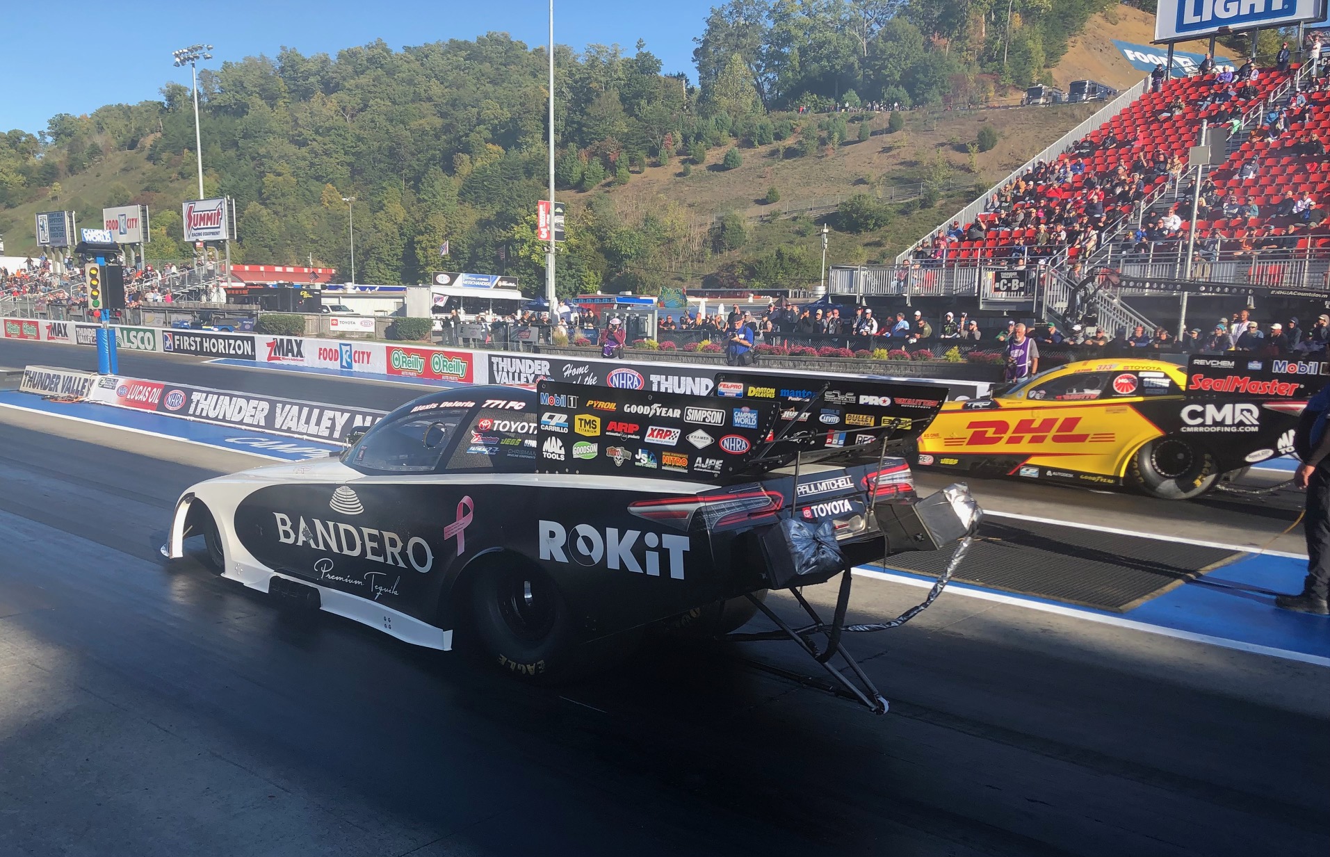 surrounding Bristol Dragway. For DeJoria who is now behind the wheel of the Bandero Premium Tequila ROKiT Toyota Camry Funny Car that is four years too long. This weekend at the NHRA Thunder Valley Nationals DeJoria, a five-time Funny Car national event winner, will return to a track where in her rookie season she raced to her first professional final round.
