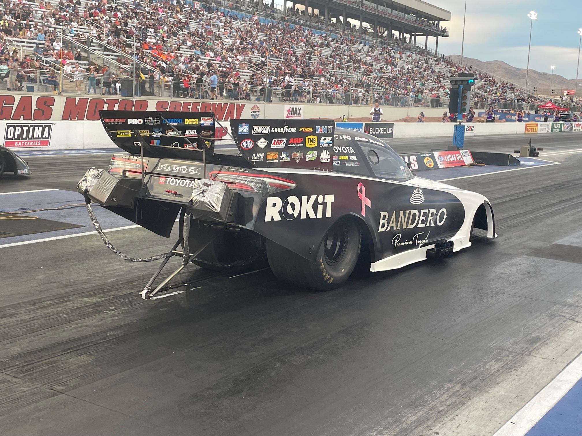 LAS VEGAS – For the second consecutive NHRA national event Alexis DeJoria drove her Bandero Premium Tequila ROKiT Toyota Camry