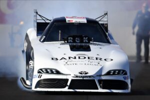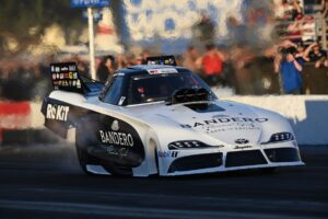 DeJoria raced the new Bandero Premium Tequila Toyota GR Supra Funny Car to a 3.945-second at 326.95-mph pass in the season’s first qualifying session, which held strong throughout Saturday’s two qualifying rounds and earned DeJoria the advantage of lane choice over Jim Campbell, her round-one competitor.