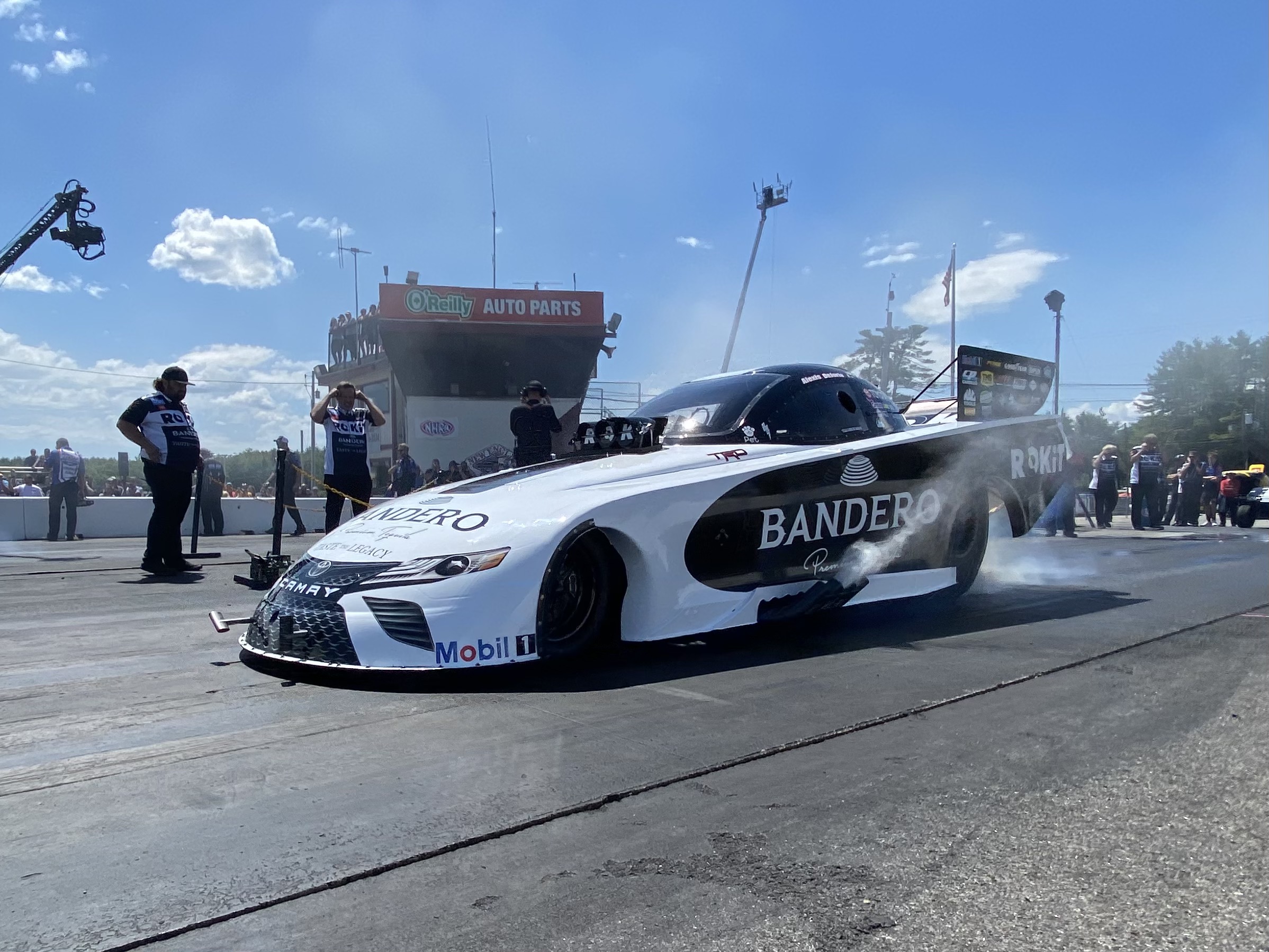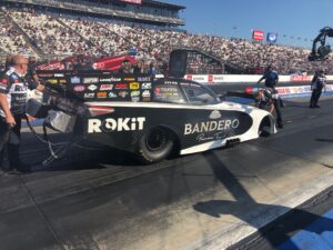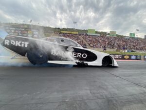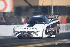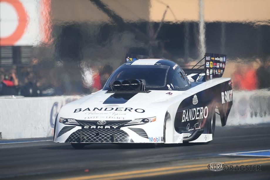 POMONA, CA – The Bandero Premium Tequila ROKiT Toyota Camry Funny Car and driver Alexis DeJoria took on an unseasonably hot