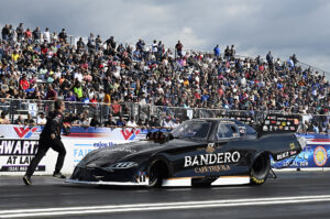 was stout at the 65th running of the annual event at In-N-Out Burger Pomona Dragstrip. In what was nearly an all-three-second field, Alexis DeJoria used her 3.921-second run from the weekend’s final qualifying outing to secure the No. 9 seed in the stacked Sunday show. Racing at her hometown facility, DeJoria was looking to add more round wins to her 2025 total, but dropped cylinders ended the Bandero Café Funny Car team’s day after the first round of eliminations.