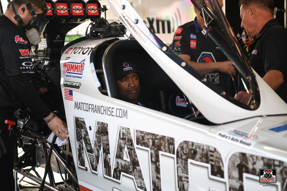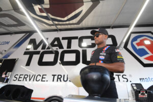 Concord, NC – Antron Brown driver of the Matco Tools Top Fuel Dragster ready for the challenge of Charlotte 4 wide racing. Charlotte 1