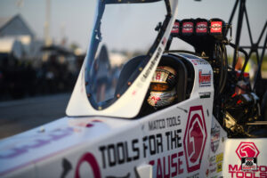 The Midwest Nationals was the debut weekend for the new ‘Tools for the Cause’ livery, which will adorn Brown’s Matco Tools/Sirius XM/Toyota/Hangsterfer’s dragster throughout October to benefit the Breast Cancer Research Foundation (BCRF). Since ‘Tools for the Cause’ began in 2012, Matco has donated over two million dollars to breast cancer research. Throughout October, 15% of the sales from select Tools for the Cause items sold will be donated directly to BCRF.