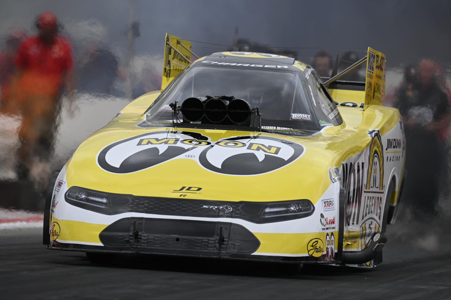 “It’s an honor and a blessing in so many ways to be able to represent Jim Dunn Racing and Mooneyes,” said Hull. “I’m going to put those guys in the forefront to make sure that they get their showing in Pomona. Jim’s shop is just 15 minutes away from the track, and with Mooneyes there and Jim’s 50th anniversary car on display, it’s going to be cool. Jim treats me really well, and he’s taught me a whole lot. He and I work well together – we speak the same language. To drive for him is just the absolute best.”