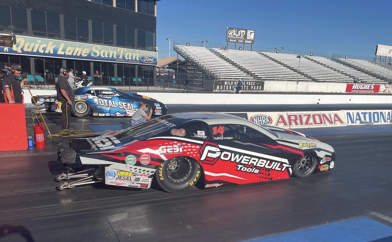 an NHRA national event. The 23-year-old third generation driver drove the Powerbuilt Tools Chevrolet Camaro to the No. 8 spot at the NHRA Arizona Nationals on the strength of her 6.547 second run at 209.59 mph during the first session today. With Titan Racing Engine power under the hood Caruso will face Cristian Cuadra in the first round.