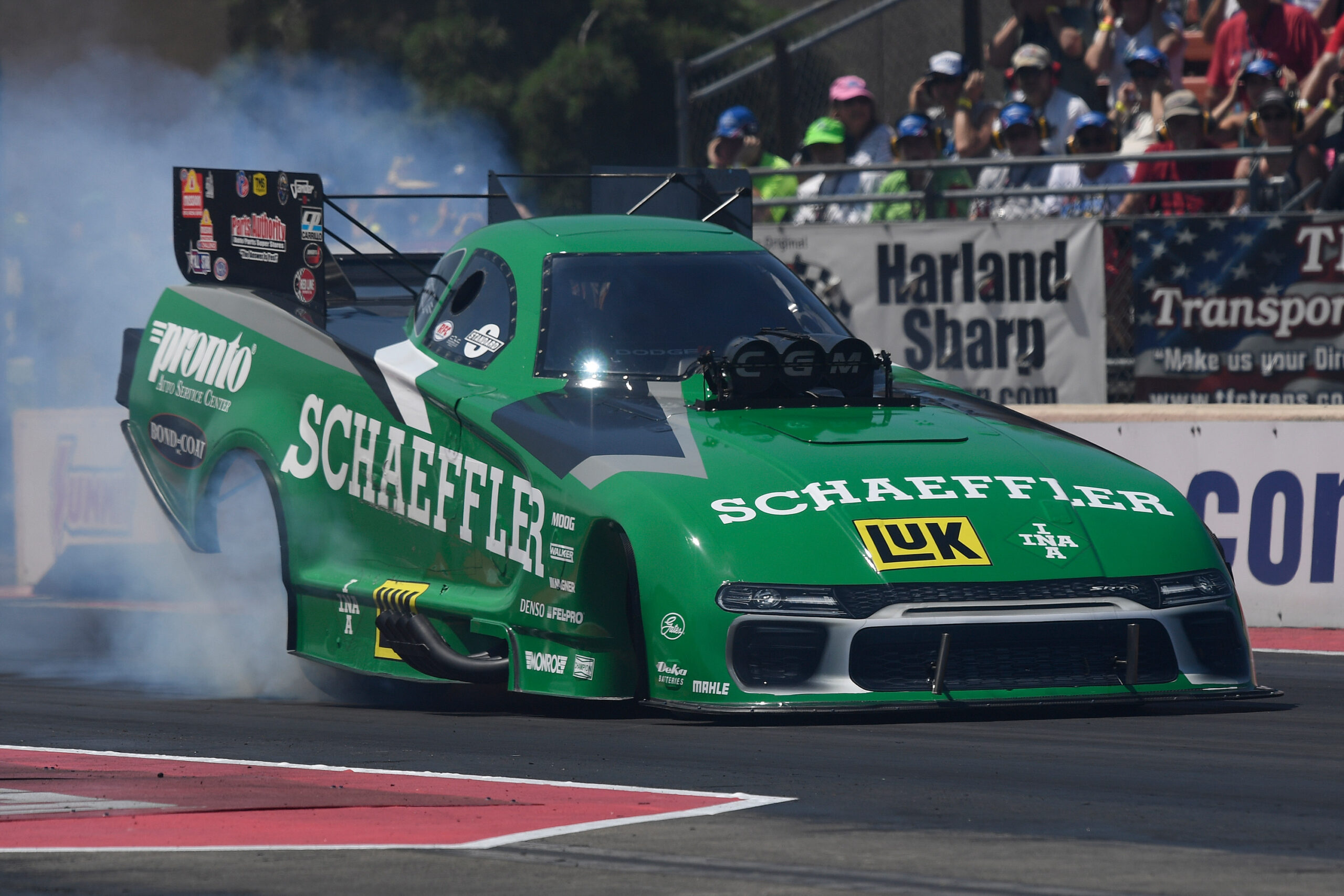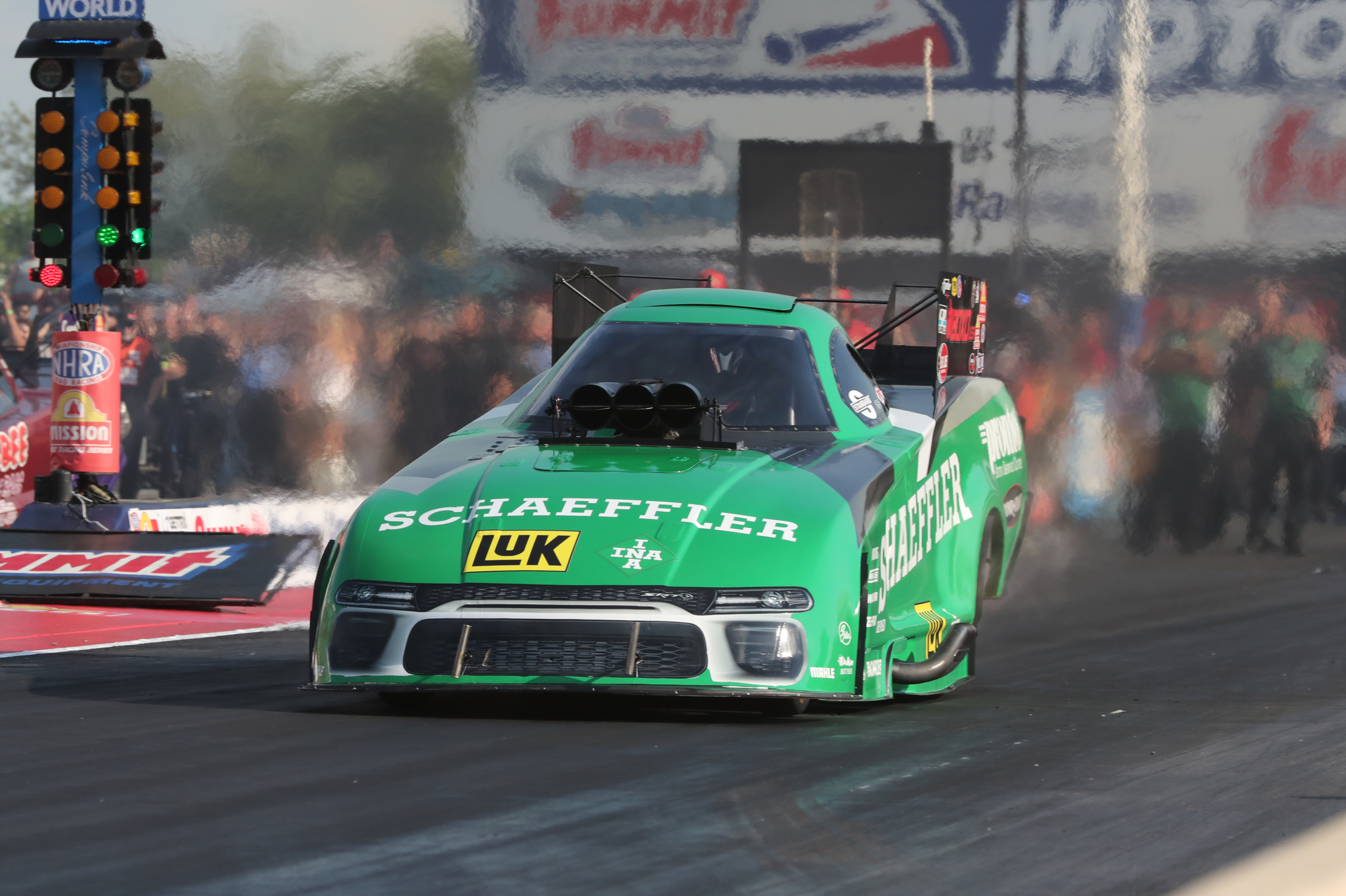 The Midland, Tex., Funny Car “rookie” took his bright green Schaeffler nitro-burning machine to a solid 3.972 seconds pass at 322.50 miles per hour in the Friday night qualifications in hot and humid conditions at the popular Ohio racing plant. At the time of the run, Green ranked second in the field and ended up seventh after Saturday’s two qualifying sessions.