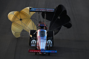Association (NHRA) Top Fuel race in his Tony Stewart Racing (TSR) Dodge//SRT dragster at the NHRA Four-Wide Nationals drag races, while TSR teammate Matt Hagan just missed a TSR win “double up” in the Funny Car division.