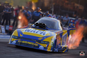 Pomona, Calif., and all eyes are on Don Schumacher Racing’s Funny Car duo. Leading the category is NAPA AUTO PARTS Dodge Charger SRT Hellcat driver Ron Capps who carries a 58-point advantage over his No. 2 ranked teammate, Direct Connection Dodge Charger SRT Hellcat pilot Matt Hagan.