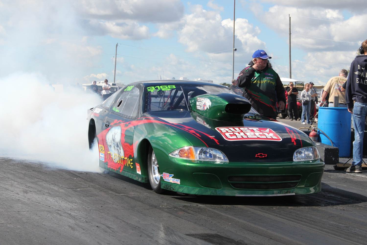 With Saturday racing festivities washed out, Sunday produced a fantastic cool summer day, which brought out over 120 competitors, 75 of which were Modified and Super Pro competitors looking to compete for the NHRA “King of the Track” Wally.