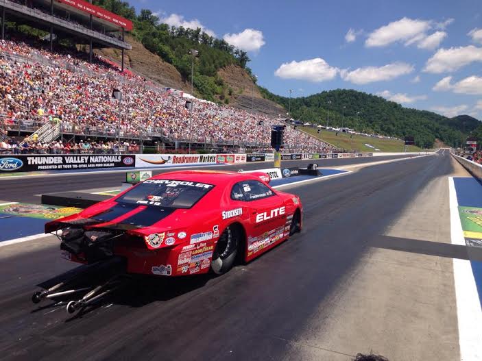 a quick lap during qualifying for the Ford NHRA Thunder Valley Nationals at Bristol Dragway.
