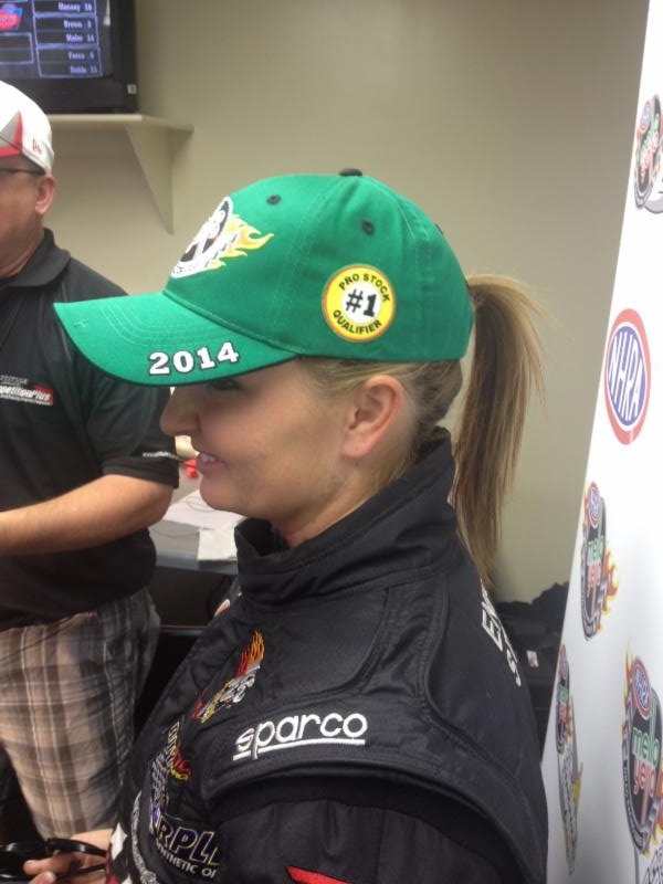 That earned the Pro Stock points leader her seventh career No. 1 and first of 2014.