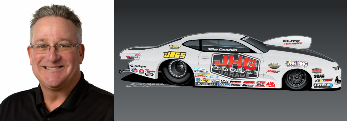 WYNNEWOOD, OK – Veteran racer Mike Coughlin will celebrate 40 years of having an NHRA license by driving a Johnson’s Horsepowered