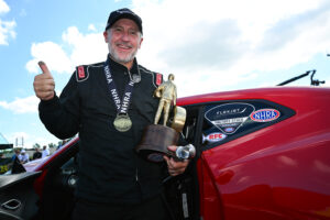In the final Janac grabbed a starting line advantage and never trailed in the race when Bell overpowered the track coming off the starting line. Janac’s winning elapsed time of 8.037 seconds was an improvement over his semifinal winning time. As Janac crossed the finish line the weight of the achievement hit the veteran driver.