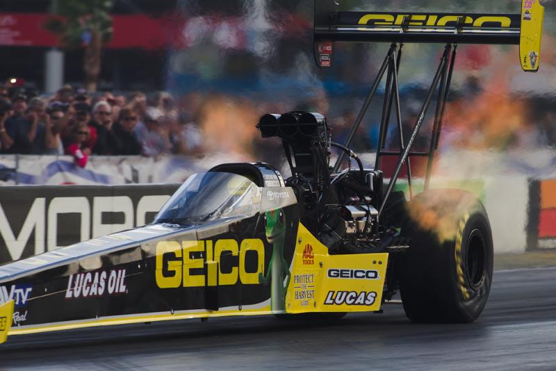 NHRA Finals into his third victory of the season. Unfortunately, the driver of the GEICO/Lucas Oil Top Fuel dragster lost a close quarterfinal race to newly re-crowned champion Tony Schumacher by just .017-second to close a very impressive first year.