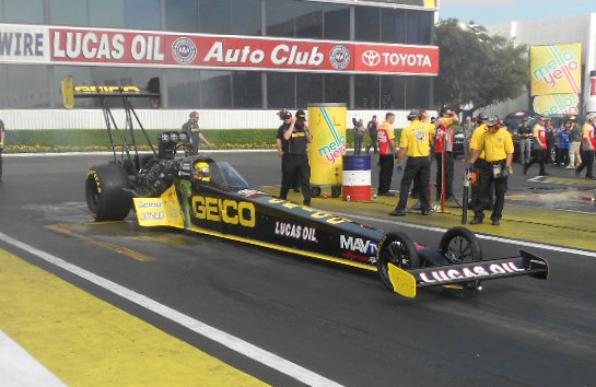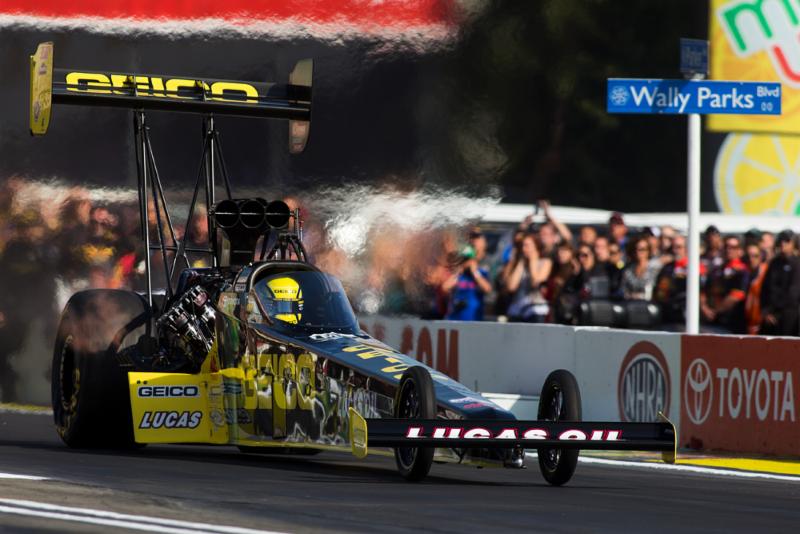 POMONA, CA – GEICO/Lucas Oil Top Fuel dragster driver Richie Crampton continues to show speed in Pomona,