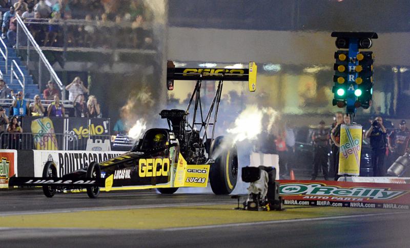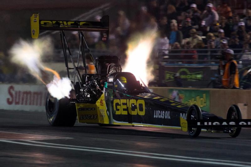 CHICAGO, IL – Showing a flair for the dramatic and his continued usefulness as a former crewmember, GEICO/Lucas Oil Top Fuel