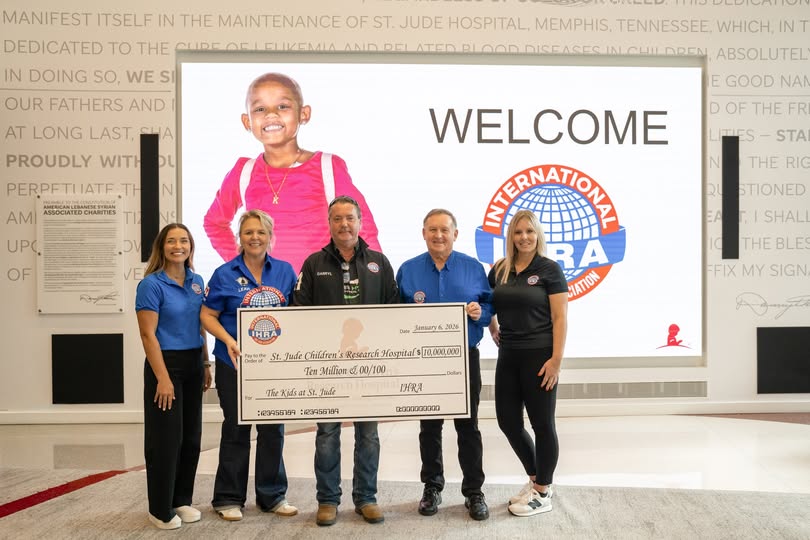 In addition to the donation, IHRA announced its intent to collaborate with St. Jude on future fundraising initiatives designed to expand awareness and generate additional support for the hospital’s mission: ensuring that no child is denied treatment based on race, religion, or a family’s ability to pay.