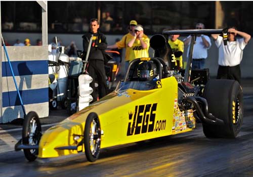 Still it was the veteran Jeg who made the biggest splash with his victory in the Shootout, which awarded the winner a 2011 American Race Cars dragster, a car that was sold on the spot to an interested buyer.