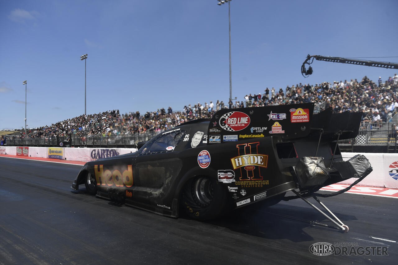 Spencer Hyde, Stratford, Ontario, Head Inc. Hyde Construction Funny Car, (.074), 3.904 sec, 327.51 mph def. Alexis DeJoria, Los Angeles, Calif., Bandero Café Funny Car, (.103), 3.878 sec, 331.77 mph