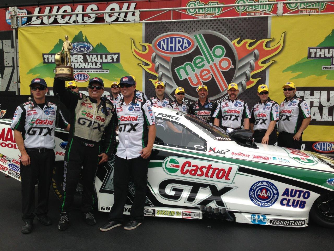 EPPING, NH – On the heels of his first win in 2013 John Force has pushed his Mike Neff tuned Castrol GTX Ford Mustang Funny Car to