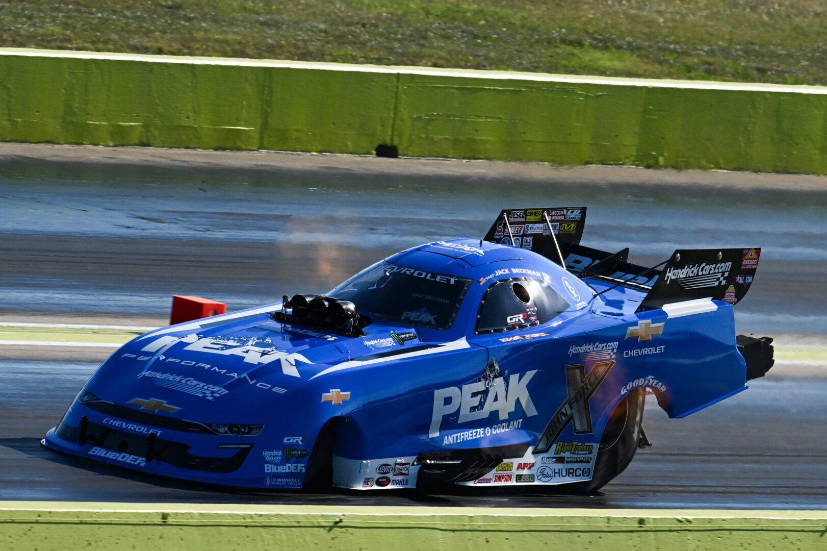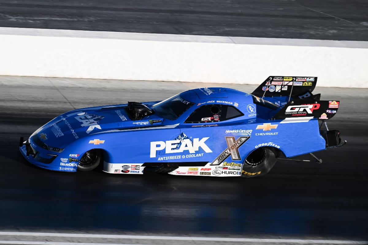 John Force Racing teammate Jack Beckman erased his 16th-place showing after the first round with a second-round run of 3.937 seconds at 330.47 mph in the PEAK Antifreeze and Coolant Chevrolet SS Funny Car. In the first session, the car launched well but broke the tires at the 330-foot mark and slowed to a run of 4.620 seconds at 178.31 mph. Fast Jack is currently seventh in the 16-car ladder. Continue reading