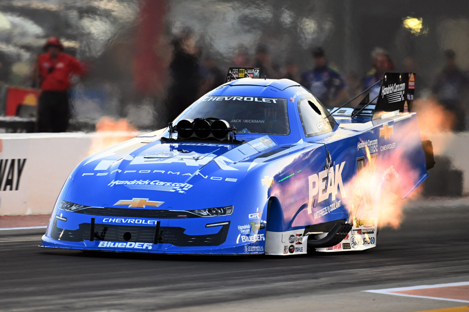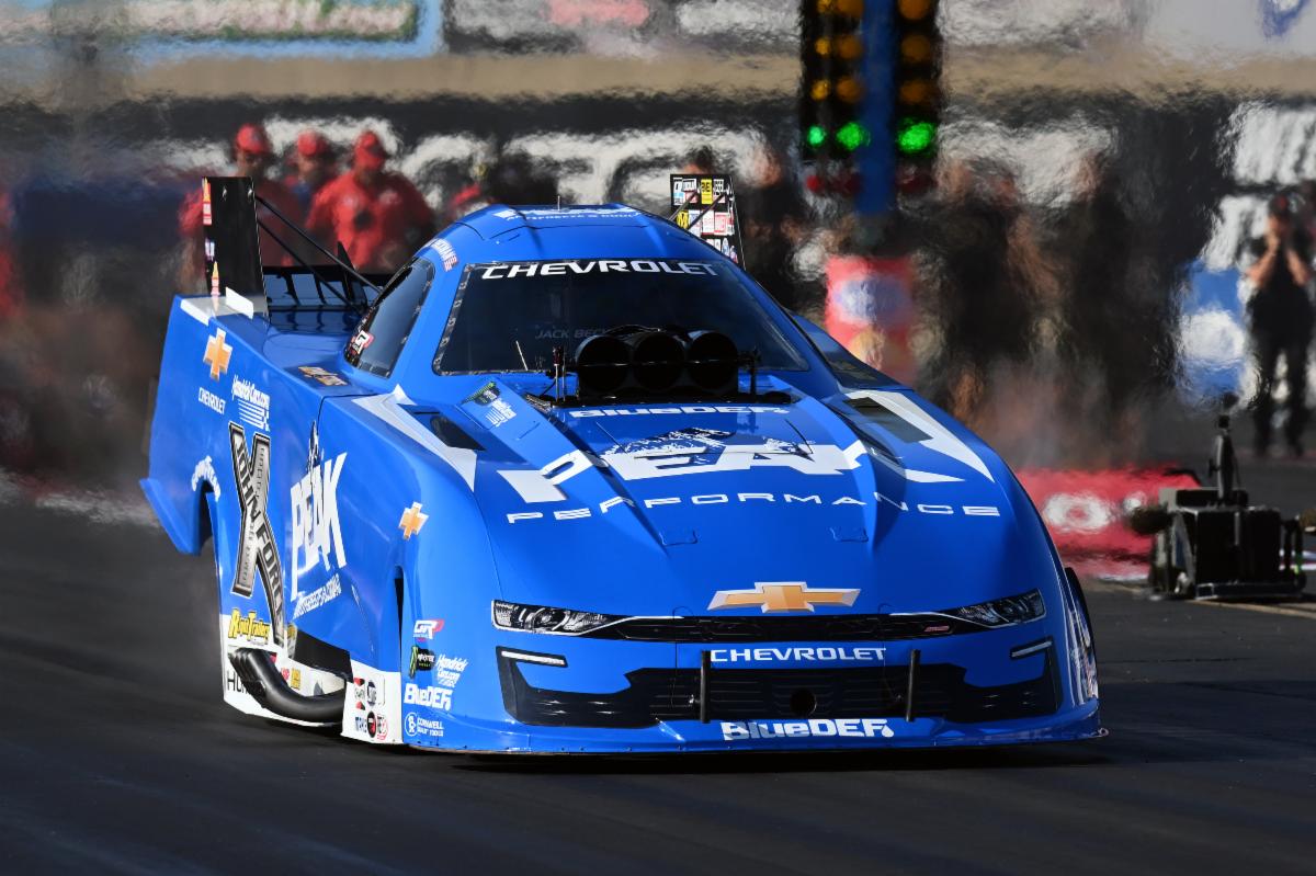 It was there, on Sept. 29, 2024, that Beckman, driving in his eighth race for the injured John Force after almost four years out of the sport, defeated Ron Capps in the final round to return John Force Racing’s PEAK Antifreeze and Coolant Chevrolet Funny Car to the winner’s circle.