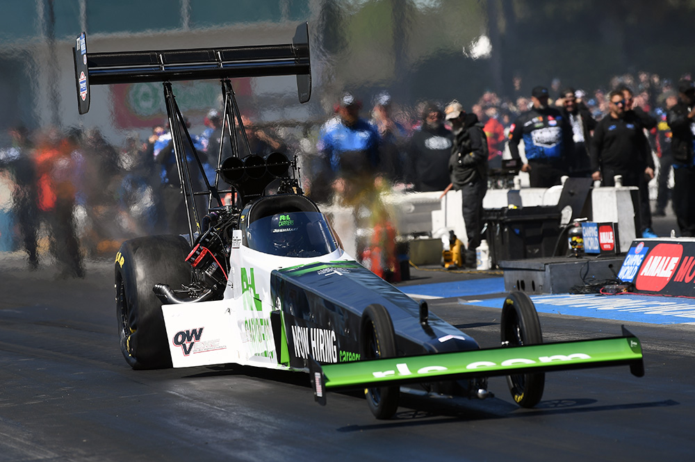 on the NHRA Camping World Drag Racing Series. To date the second year Top Fuel team owner and driver has stepped up to the challenge advancing to at least the quarterfinals at the conclusion of his first races at both the Arizona Nationals and then two weeks ago at the Virginia Nationals where he qualified 13th and grabbed an upset win over Clay Millican before dropping the quarterfinal race to Mike Salinas.