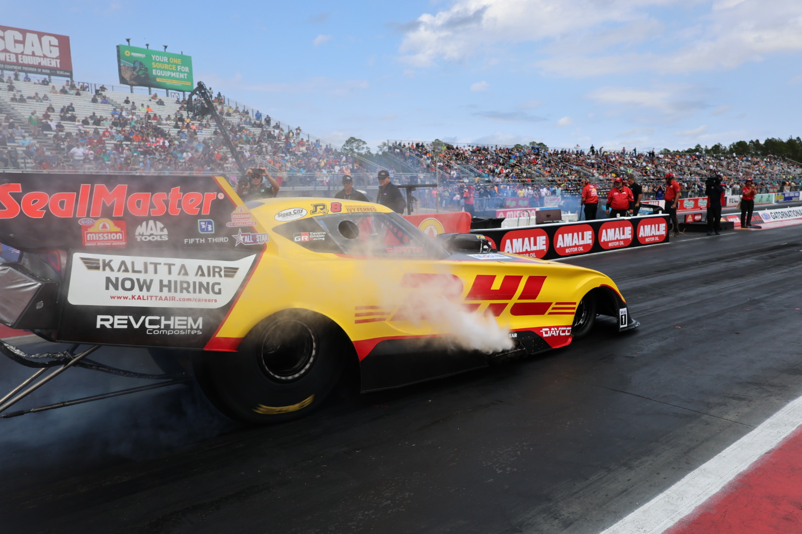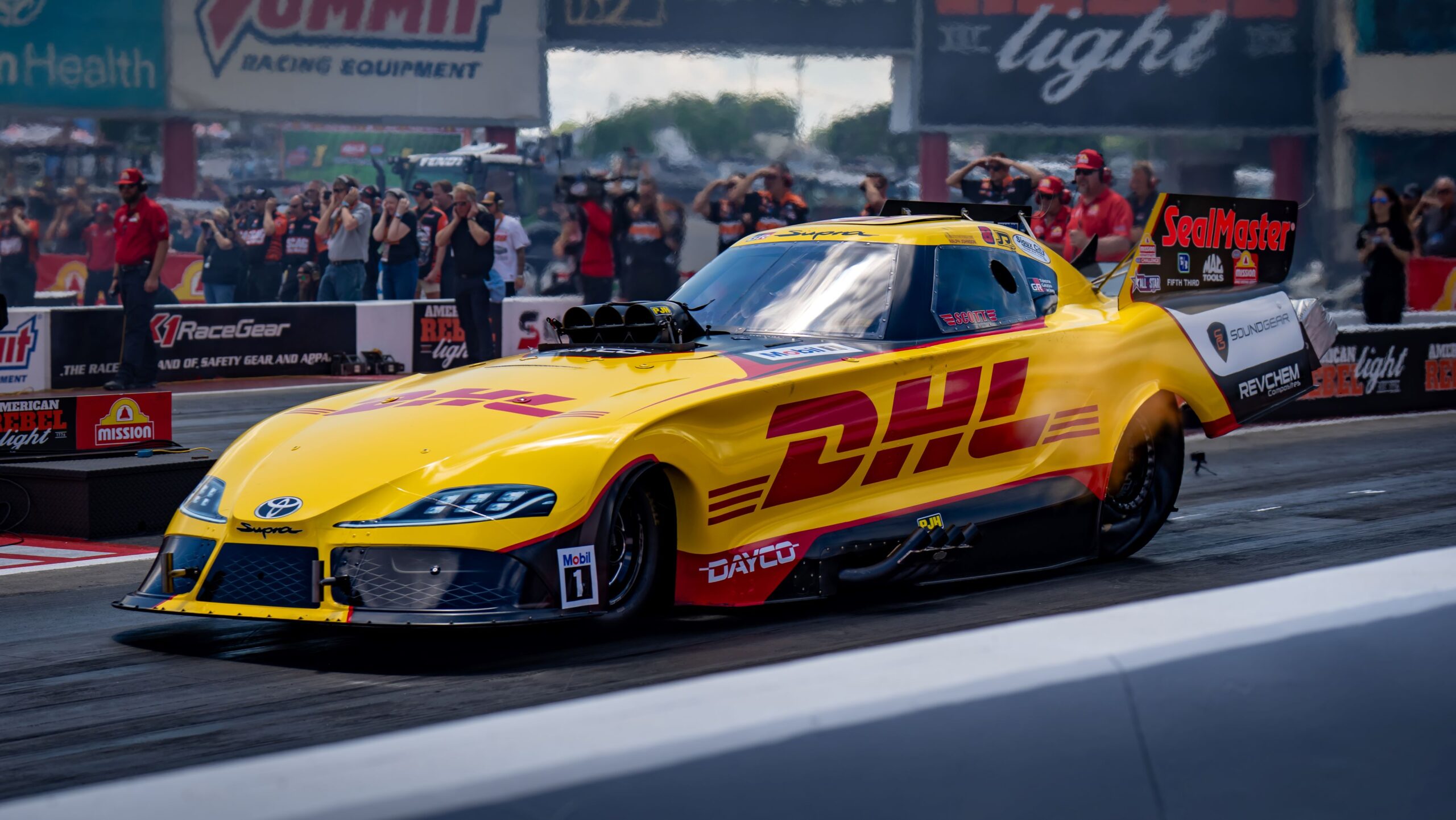 his first run of the weekend Friday afternoon when the DHL GR Supra needed just 3.924 seconds to reach the finish line at 325.37 mph.