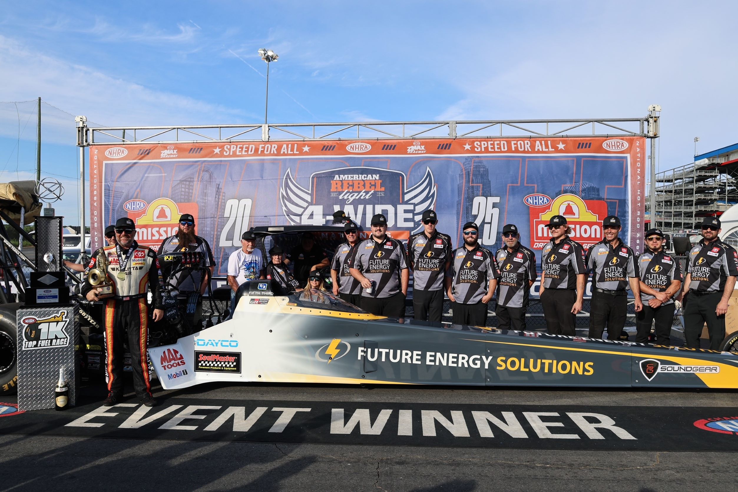 Shawn Langdon and the Future Energy Solutions Dragster Win 1000th Top Fuel Race at American Rebel Light NHRA Four-Wide Nationals