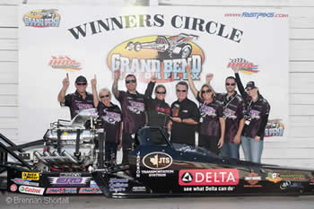 “Qualifying went well, we had three great passes down the track. Unfortunately we hurt it on the second and third runs, so the crew really had to thrash. Everybody pulled together and made it happen. It was a lot of hard work in the Chicago heat and humidity, but as the day went by on Sunday, it was definitely worth all of the work!” said the former junior dragster driver.