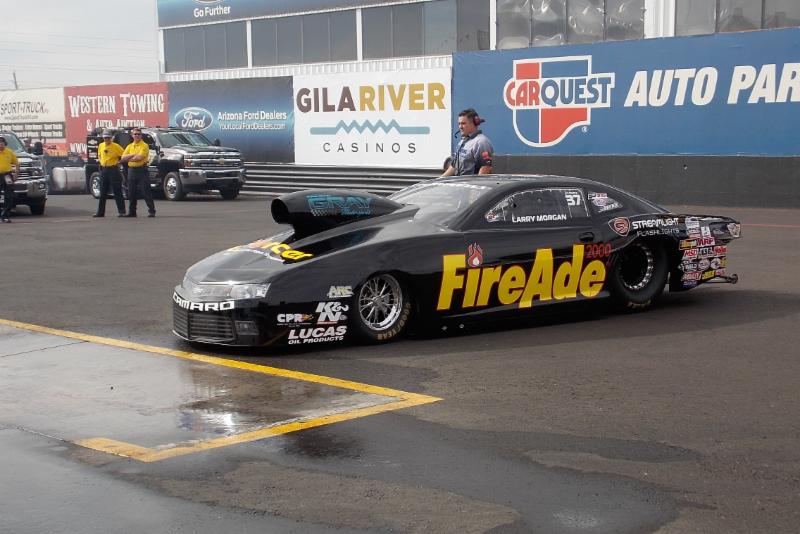 GAINESVILLE, FL – FireAde Chevrolet Pro Stock driver Larry Morgan was in the right place at the wrong time in the