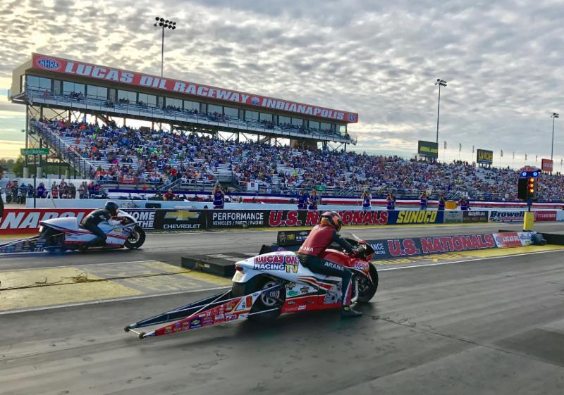 Pro Stock Motorcycle rider Hector Arana Jr. is hoping for another trip to Lucas Oil Raceway’s hallowed winner’s circle atop his Lucas Oil Racing TV Buell at the 63rd annual Chevrolet Performance U.S. Nationals, which turns to eliminations Monday.