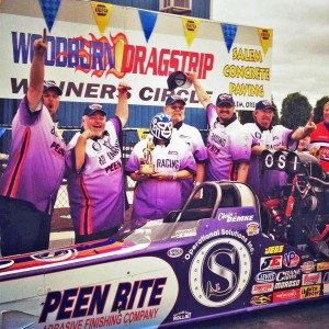 has been waiting for. It is here where they can flex their tuning muscles and let it rip. The adjustments and revisions they have made to their Peen Rite/ OSI / 801 Racing Top Alcohol Dragster will make this weekend’s race something to watch.