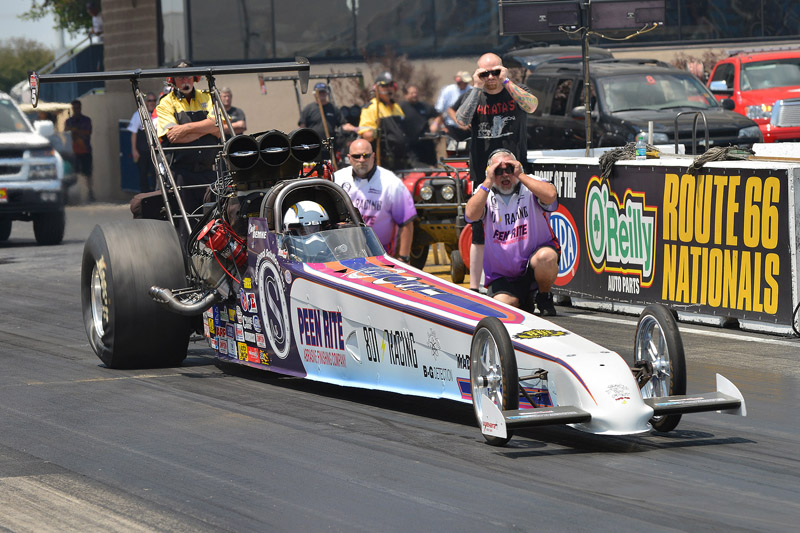 On Saturday, a 5.296/269.56 was put up on the scoreboard and they went into Sunday eliminations still in the top spot. The crew, led by crew chief Jerry Maddern, tuner/clutch guy Adam Rhoades, Kevin Watson, Mike Demke and Ronald Mann, had found the electrical issue and cured the car’s bad habits. This weekend they were assisted by Peen Rite’s Mike Garcia and OSI’s Kent Goss.
