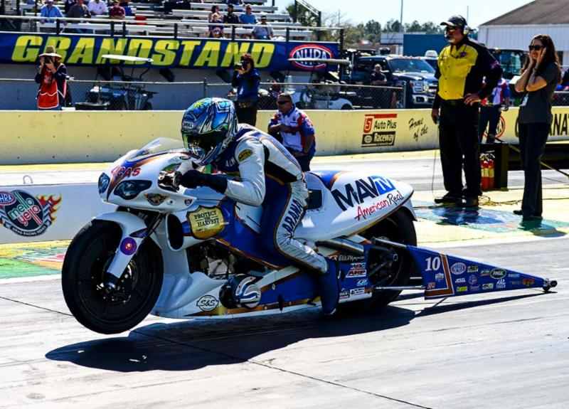 Motorcycle rider Adam Arana, who scored his first round-win of the season in his Atlanta Dragway debut.