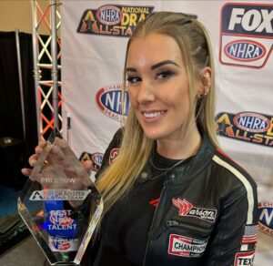 INDIANAPOLIS – NHRA newbie Ida Zetterström was named ‘Best New Talent’ by NHRA’s National Dragster publication at the Performance