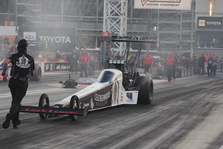 CONCORD, NC – With Leatherwood Distillery and Waltrip Brewing Company co-branding on his JCM Racing dragster, eight-time NHRA