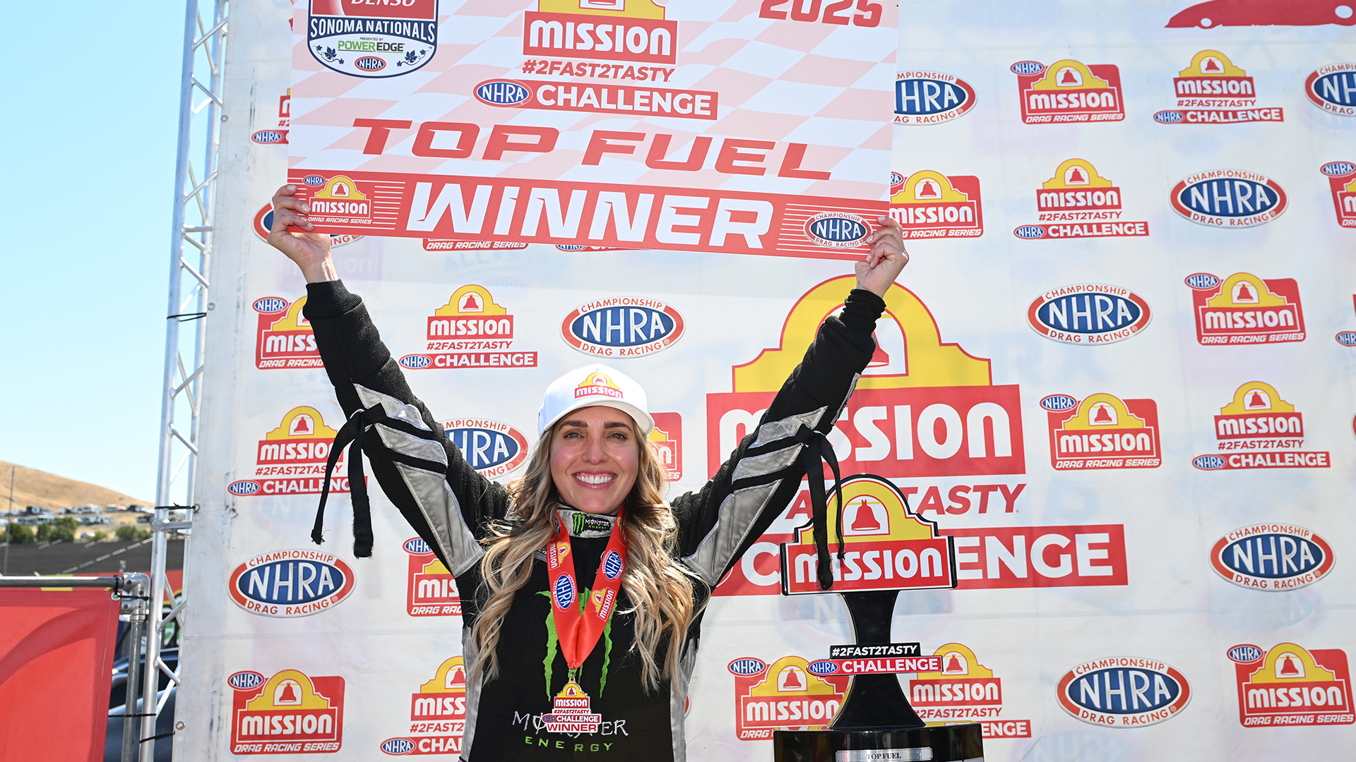 SONOMA, CA – A day after making the fastest run in NHRA history, Top Fuel star Brittany Force won the Mission #2Fast2Tasty Challenge for the first time in 2025, defeating Justin Ashley in the final round of the bonus race on Saturday Sonoma Raceway as part of this weekend’s 37th annual Denso NHRA Sonoma Nationals presented by PowerEdge.