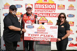 J.R. Todd (Funny Car), Greg Anderson (Pro Stock) and Richard Gadson (Pro Stock Motorcycle) also won the Mission #2Fast2Tasty Challenge, while Brittany Force (Top Fuel), Jack Beckman (Funny Car), Anderson and Gaige Herrera (Pro Stock Motorcycle) remained the provisional No. 1 qualifiers at the 14th of 20 races during the 2025 NHRA Mission Foods Drag Racing Series season.