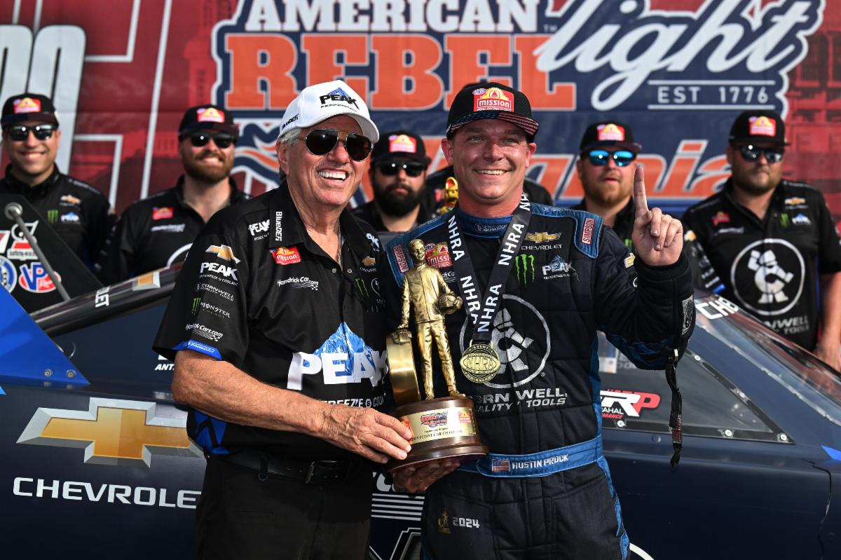 Austin Prock (Funny Car), Erica Enders (Pro Stock) and Gaige Herrera (Pro Stock Motorcycle) also won the 14th of 20 races during the 2025 NHRA Mission Foods Drag Racing Series season.