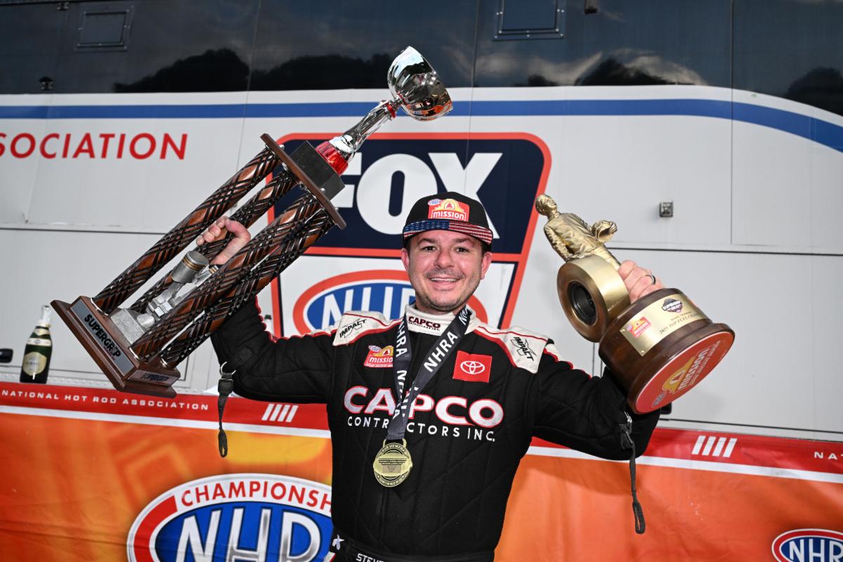J.R. Todd (Funny Car), Aaron Stanfield (Pro Stock) and Gaige Herrera (Pro Stock Motorcycle) also won the Mission #2Fast2Tasty Challenge, while Austin Prock (Funny Car), Dallas Glenn (Pro Stock) and Brayden Davis (Pro Stock Motorcycle) qualified No. 1 at the eighth of 20 races during the 2025 NHRA Mission Foods Drag Racing Series season.