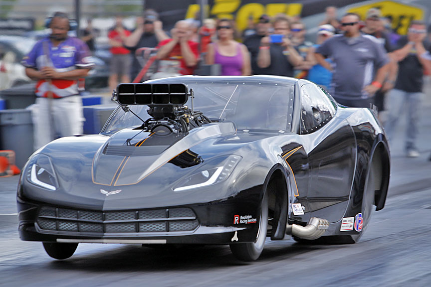 That elapsed-time as well as that mph are personal bests, as Harrington had previously been 4.19 and 187 mph with his combination consisting of a turbocharged small-block Ford which sips alcohol and rolls on a Team Z Motorsports-tuned chassis.