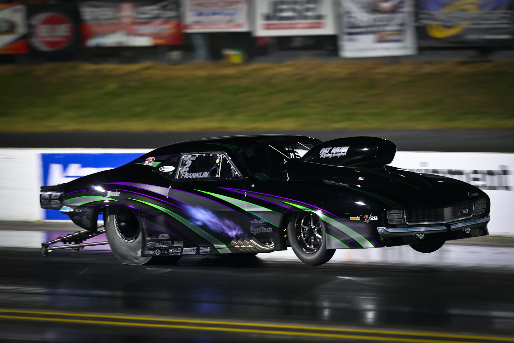 Shootout presented by the Travis Mills Foundation Friday night while also qualifying No. 1 at the Travis Mills Foundation PDRA Mid-Atlantic Showdown presented by Red Line Shirt Club. Franklin laid down a 3.648-second pass at 206.99 mph in his Musi-powered “Jungle Rat 3.0” ’69 Camaro in the final qualifying session to defeat Billy Albert and his 3.658 at 206.67 at Virginia Motorsports Park.