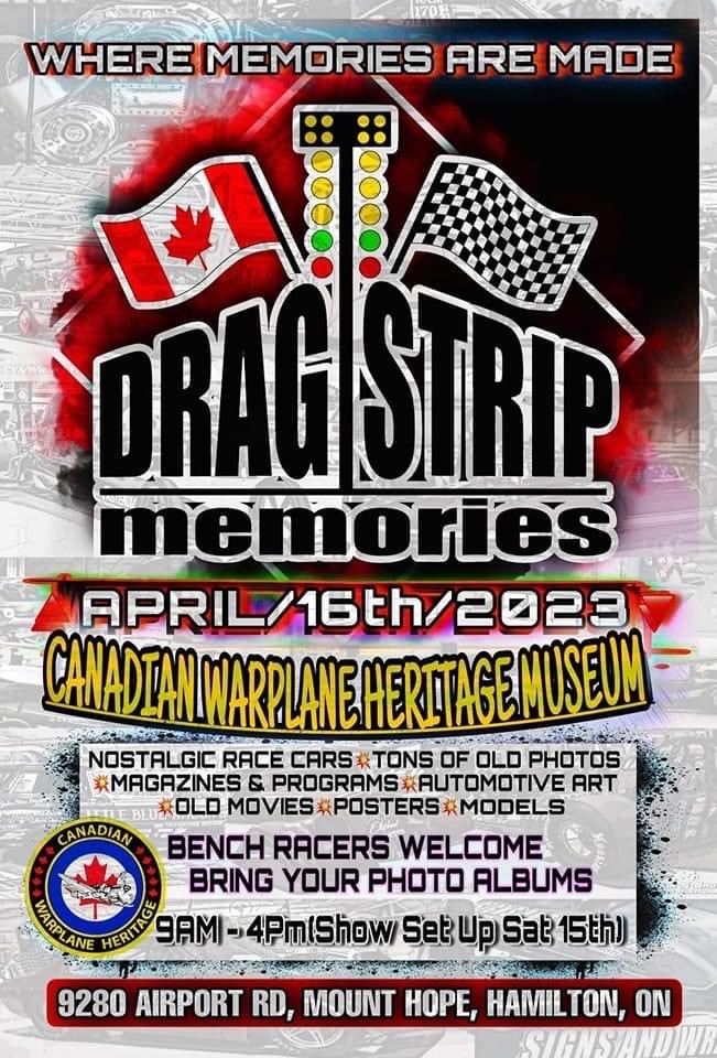 MT. HOPE, ON –Dragstrip Memories returns once again to the Canadian Warplane Heritage Museum, to present the largest collection of